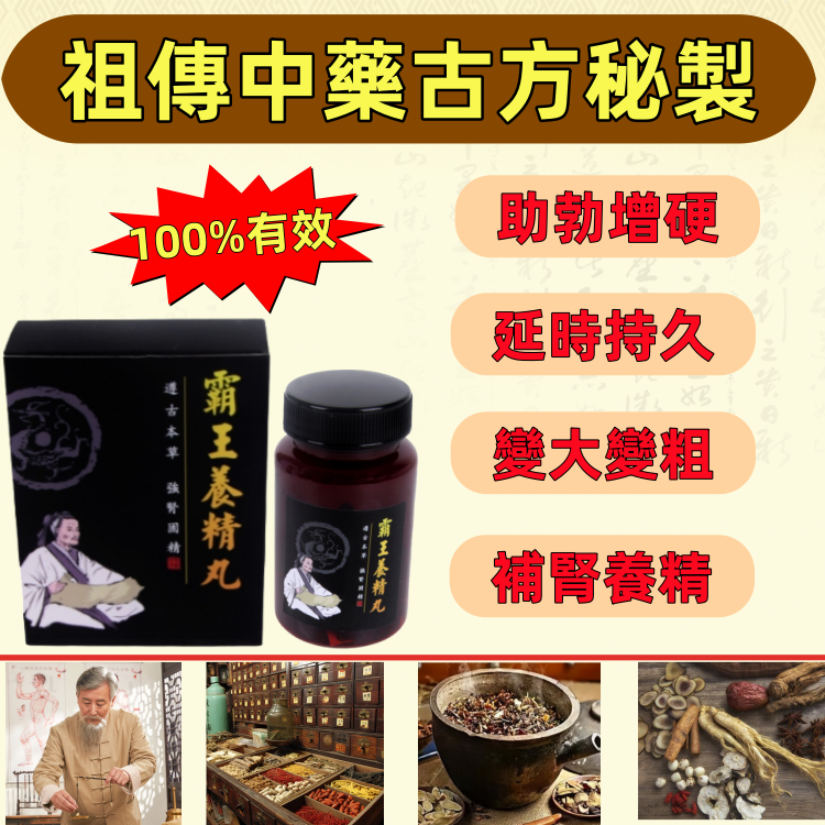 - 40歲以上男生必吃猛藥{霸王養精丸+老中醫套盒}【复制】 NT$960 速勃增硬,延時持久,陰莖增大增粗,調養攝護腺,壯陽補腎神藥